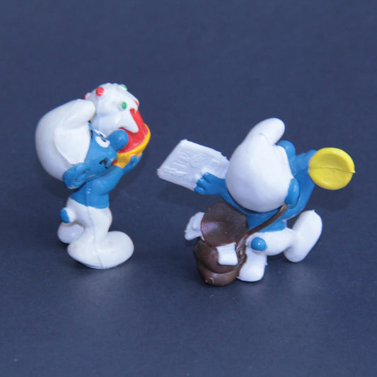 1978 Vintage Smurfs Figures – Postman w/ Valentine & Greedy Smurf w/ Red Cake 💙