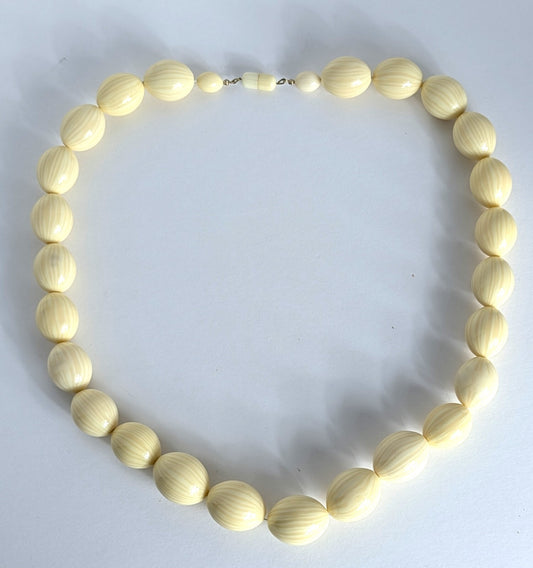28.5" Vintage Carved Celluloid Galalith Graduated Bead Necklace Large 1" Bead