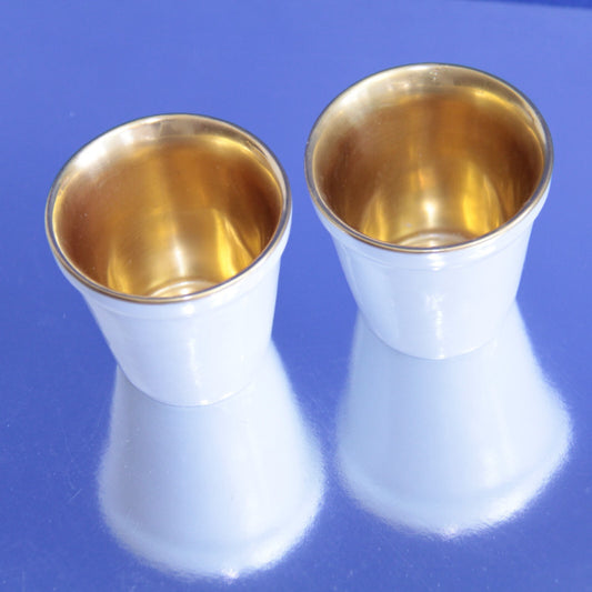 2x Antique Singer Limoges France Porcelain Mini Petit Pot - White w Gold Well ✨
